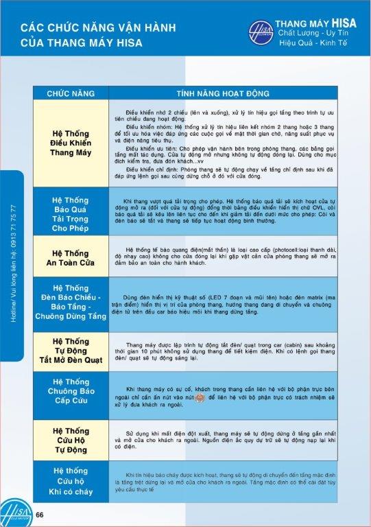Trang 66: Chức năng vận hành của thang máy Hisa